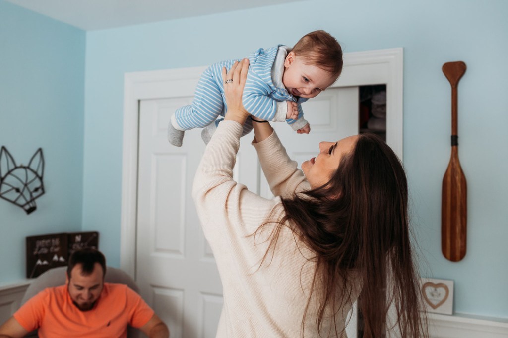 There are a few ways that you can use your own body to help tummy time be a little easier on your baby. Having them “fly” is still doing some of the work of tummy time, and according to our doctor, it still counts. You can also lay your baby on your chest while you’re laying down so that they can look at you, and often just you being there to play with them will make them a little happier to be on their tummy.